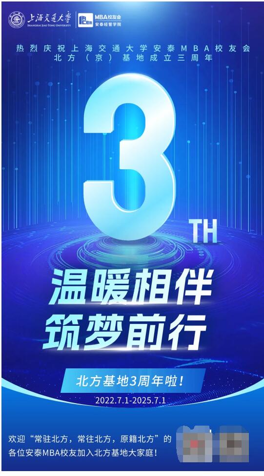 上海交通大学安泰MBA校友会北方基地成立三周年纪念活动于2025年6月27日下午三点在北京亦庄博兴五路1号 视源股份北京产业园举办◆★■,本次活动为去年两周年活动的发展和延续,并深入走进北京亦庄(北京经济技术开发区)企业,上海交通大学安泰MBA常驻北方地区校友及在校生、安泰EMBA、上海交通大学高级金融学院在京、以及上海交通大学北京、天津等地校友会代表★◆,在京其他商学院MBA校友代表◆◆◆★,赞助商代表百余人参加本次活动◆■■。